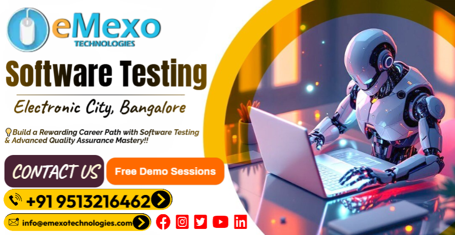 Join eMexo Technologies, the top-rated Software Testing Training Institute in Electronic City, Bangalore, and master Manual and Automation Testing with real-time projects, expert mentors, and 100% placement assistance.