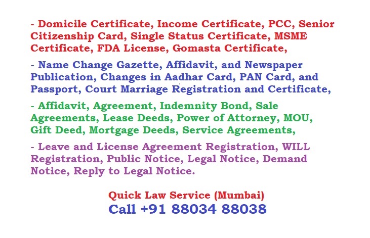 - Single Status Certificate, MSME, FDA License, Gomasta Certificate
