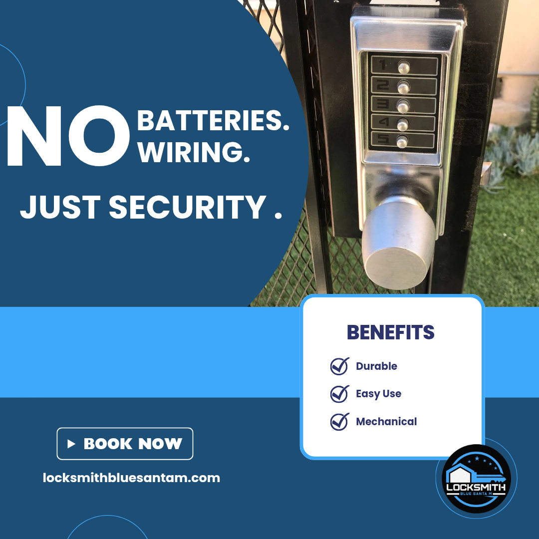 The Simplex 1011 is a fully mechanical pushbutton lock — no batteries or wiring needed!
